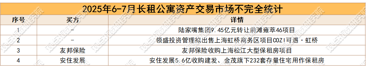 值得注意的是,2025年6-7月,长租公寓投资市场动作频频。