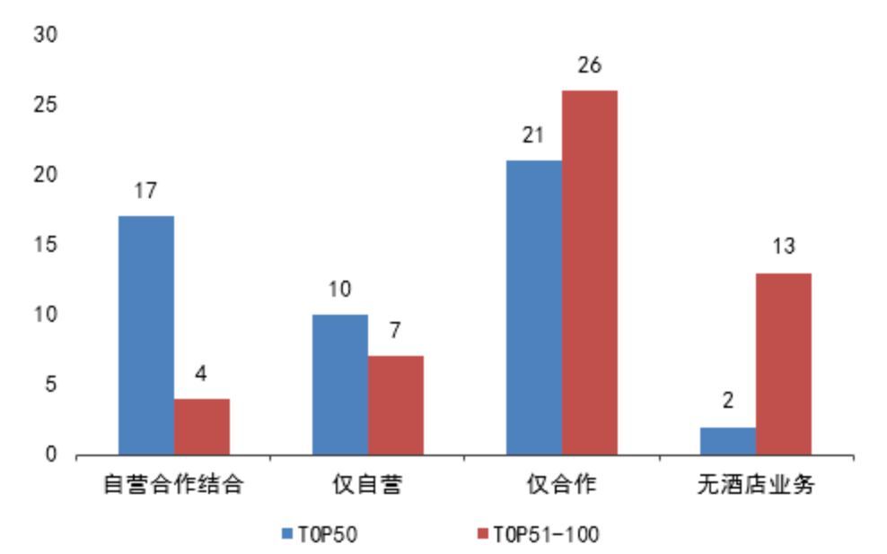 百强房企截至2021年底的酒店业务结构 图片来源:克而瑞