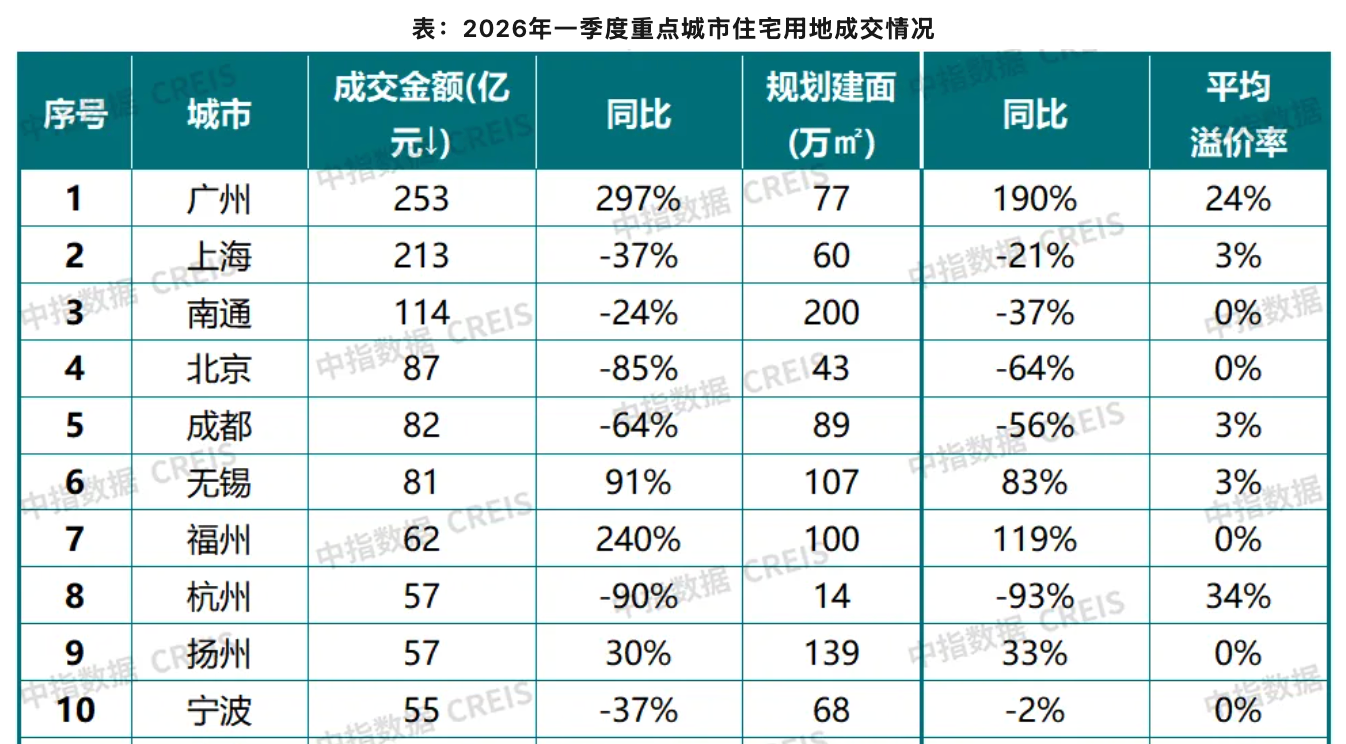 今年以来,广州已凭借着多宗市区优质地块的出让,呈现土地市场领跑的势头。