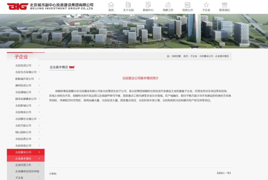 北投集团网站资料显示,北投置业经营业务涉及项目策划咨询、区域土地综合开发、保障性住房开发运营以及高端甲级写字楼、国家重点工程代建等多业态多领域。在产城融合、职住平衡方面主导开发建设的有奥体文化商务园区、承德临空经济西区、亚洲金融大厦、北投投资大厦、国家重点项目、北投科苑专家公寓、北投和苑和北投如郡共有产权住房等项目。